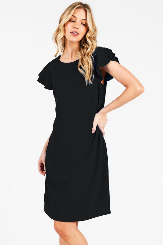 Effortlessly chic and endlessly versatile, this tunic dress is your new go-to for any occasion. Crafted from soft, solid knit fabric, it features a relaxed shift silhouette that flatters every figure. Short ruffle sleeves and tiered accents add a feminine touch, while the classic round neckline keeps it timeless. Whether you're dressing it up with heels or keeping it casual with flats, this dress delivers easy style all day long.