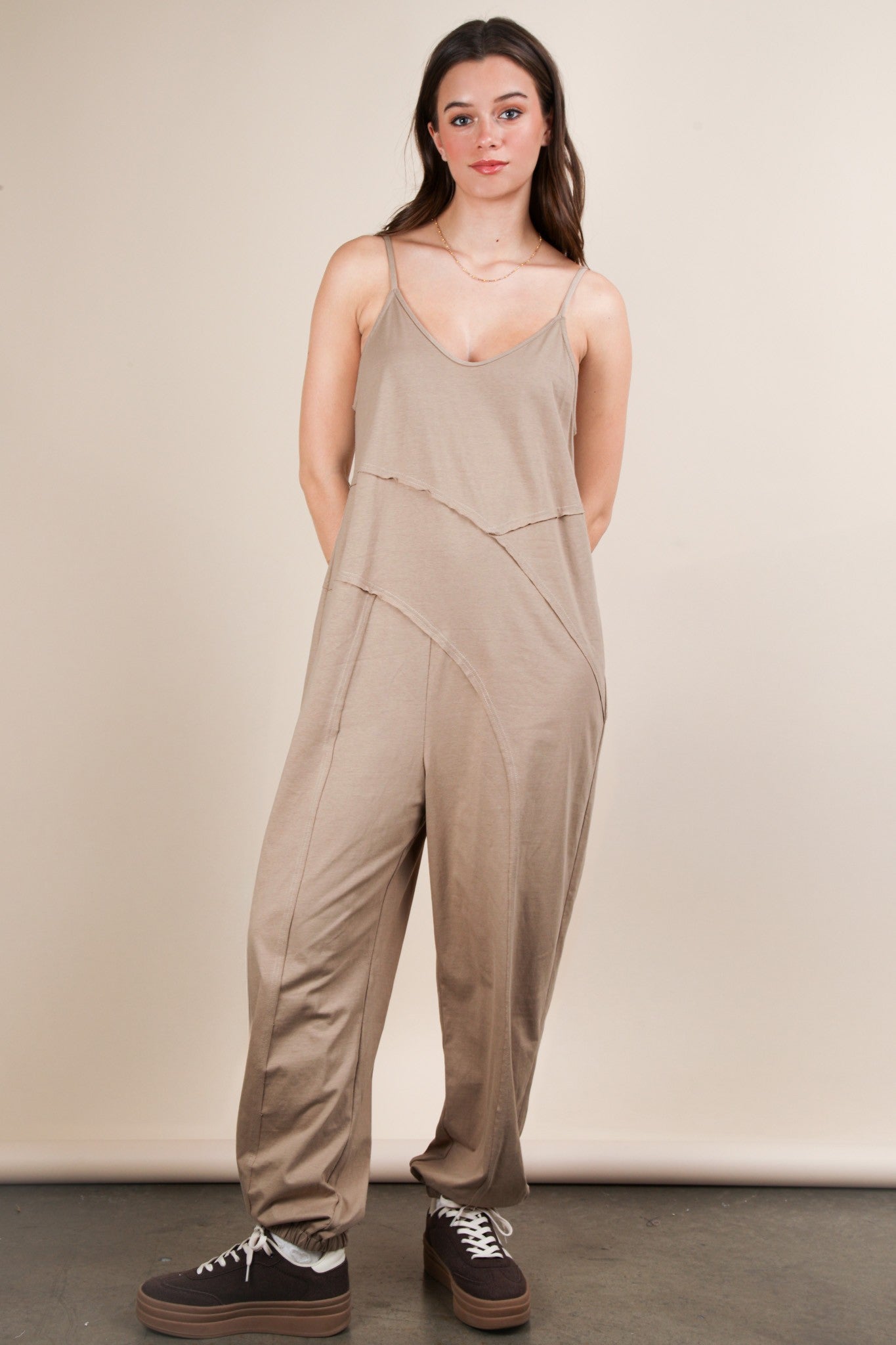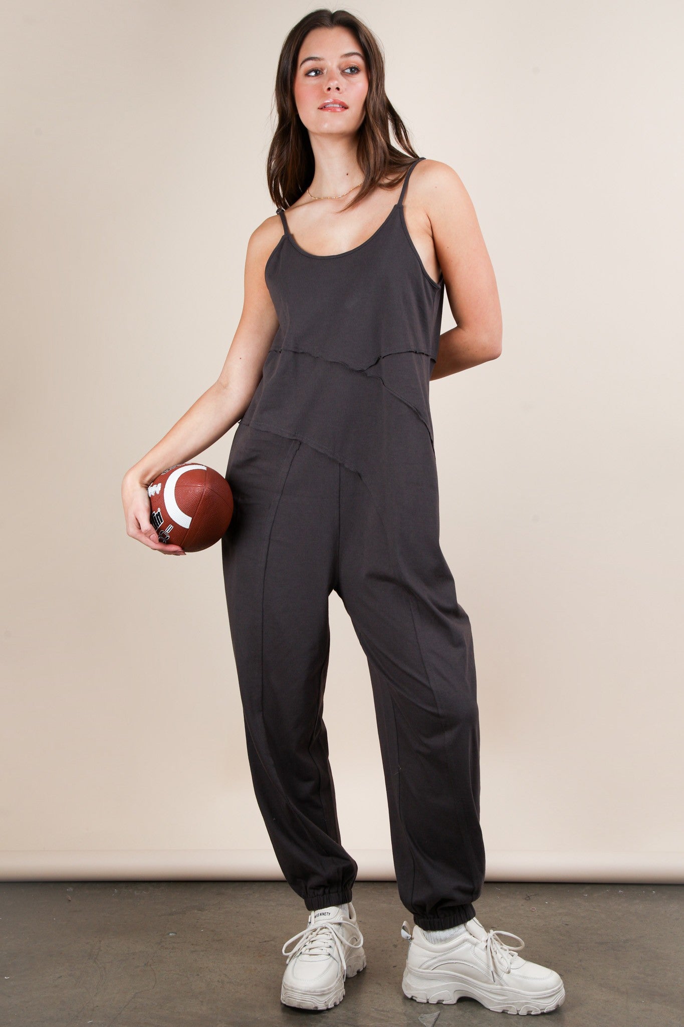 - Sleeveless Knit Comfy Casual Jumpsuit