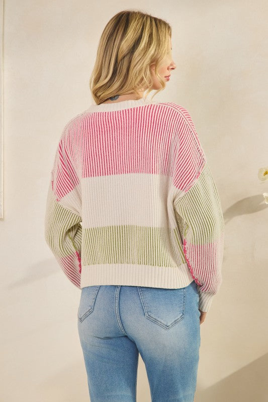 MULTI COLOR STRIPED ROUND NECK AND LONG SLEEVE CROP SWEATER
