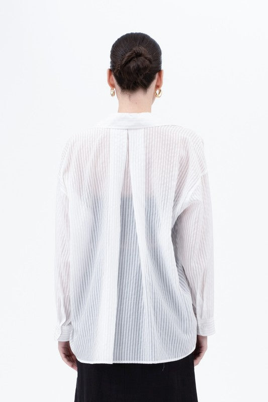 Stripe Sheer Oversized Collared Button Down Shirt